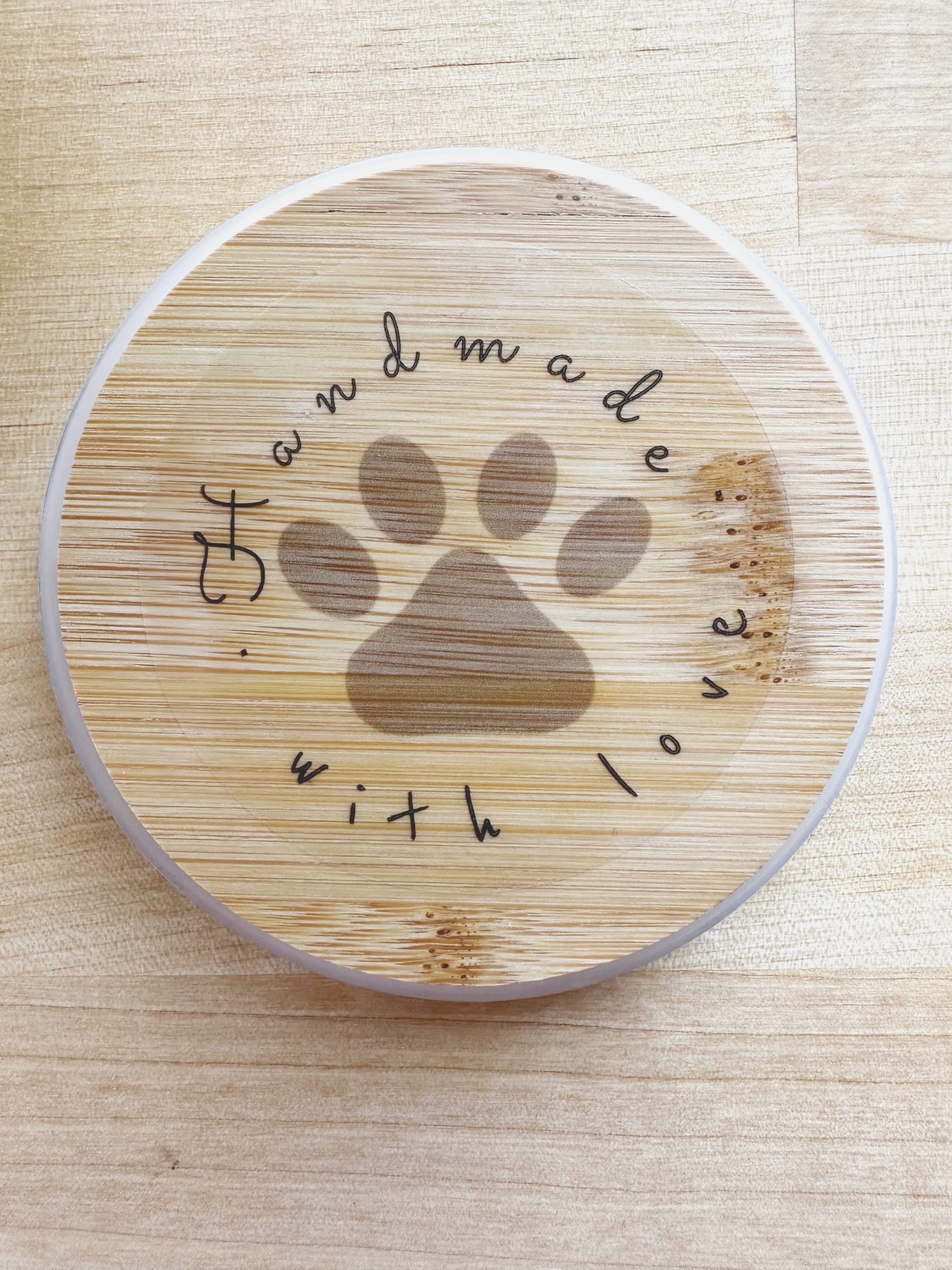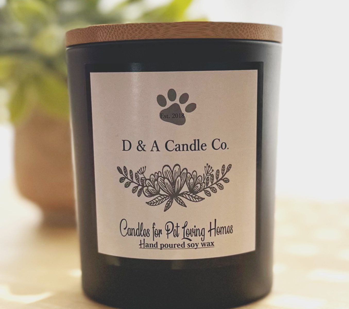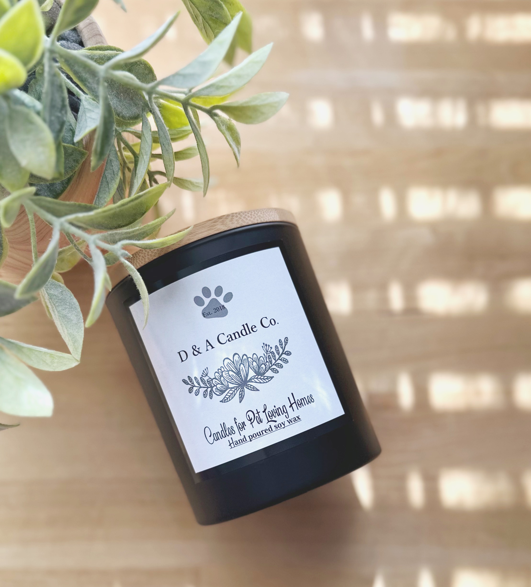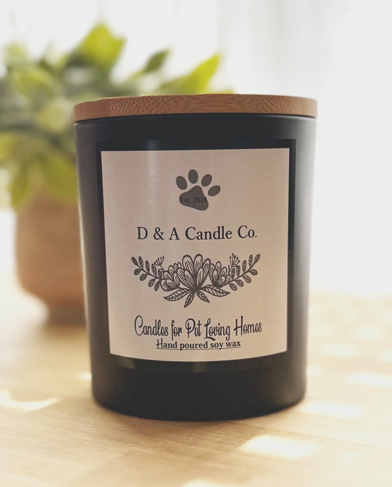 Hand poured blended soy wax in a heavy black matte glass jar with wooden lid for a sophisticated design. This candle is for a home that just wants that luxurious aroma whispering throughout. This wax is creamy and burns smooth. Each lid has a cute label underneath it to add a cute touch for pet lovers. FREE gift box matches included.